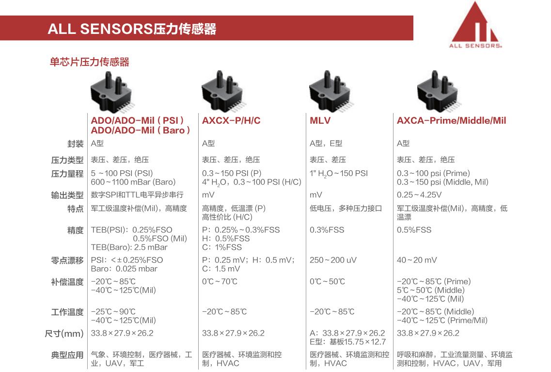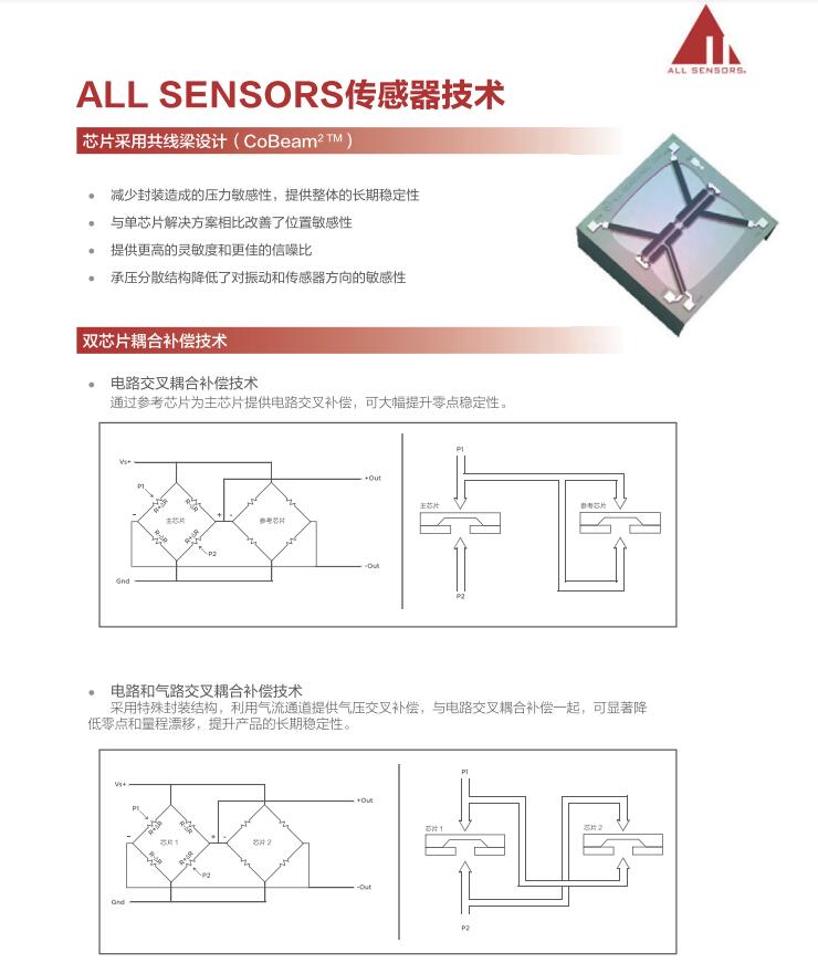 美國All Sensors (All Sensors Corporation.)是一家技術(shù)應(yīng)用型公司,是全球極少數(shù)掌握著核心傳感技術(shù)的公司之一。公司創(chuàng)始人Dennis是美國硅谷傳奇人物,于70年代在硅谷發(fā)明了全球第一顆壓力傳感器。30年來ALLSensors一直致力于為OEM客戶設(shè)計定制非常多經(jīng)典的傳感器,部分經(jīng)典產(chǎn)品并被業(yè)界某大公司收購并發(fā)揚(yáng)光大。 All Sensors掌握著世界領(lǐng)先的MEMS傳感器技術(shù),如獨(dú)有的CoBeam2 TM傳感器技術(shù)等。